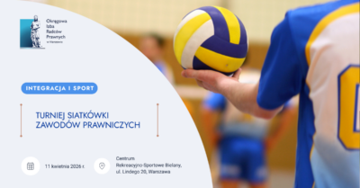 OIRP w Warszawie zaprasza do udziału w Turnieju Siatkówki Zawodów Prawniczych, który odbędzie się w Centrum Rekreacyjno-Sportowego Bielany, ul. Lindego 20 w Warszawie.