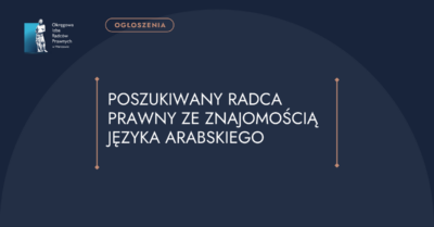 Rada OIRP w Warszawie poszukuje radców prawnych wpisanych na listę radców prawnych prowadzoną przez Radę Okręgowej Izby Radców Prawnych w Warszawie, którzy posługują się językiem arabskim w celu podjęcia się sprawy z urzędu przed Sądem Okręgowym w...
