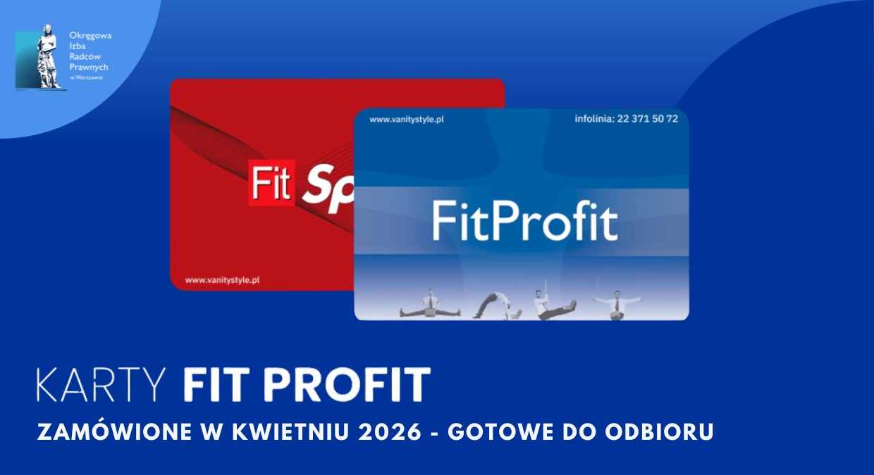 Radcy prawni i aplikanci radcowscy OIRP w Warszawie mogą już odbierać zamówione karty Fit Profit (dla siebie oraz osób towarzyszących) w Biurze Rady OIRP w Warszawie (Żytnia 15/16, hol nr 1, II piętro) w godzinach od 09:00 do 16:00.