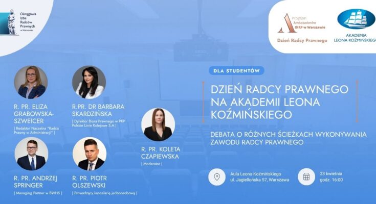 W czwartek 23 kwietnia o godz. 16:00 na Akademii Leona Koźmińskiego odbędzie się spotkanie w ramach Dni Radcy Prawnego.