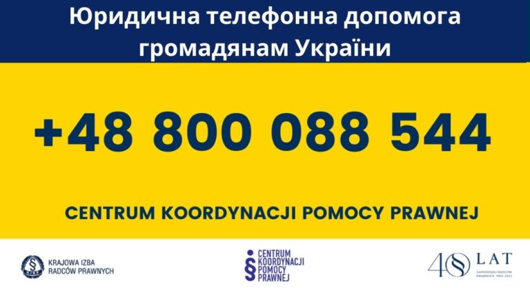 Więcej informacji, w tym szczegóły dotyczące działania Centrum Koordynacji Pomocy Prawnej w Warszawie oraz nowo utworzonej infolinii telefonicznej, dostępne są na dedykowanej pomocy Ukrainie stronie internetowej: prawnicyukrainie.pl