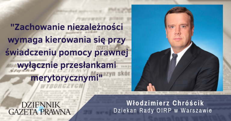W najnowszym wydaniu Dziennika Gazety Prawnej Włodzimierz Chróścik, Dziekan Rady OIRP w Warszawie oraz Łukasz Oleksiuk, Przewodniczący Komisji ds. Wykonywania Zawodu Rady OIRP w Warszawie, przedstawili zalety możliwości zatrudniania radców prawnych na umowę o pracę.