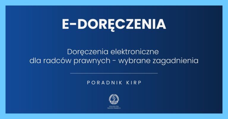 Wspierając radców w dostosowaniu się do nowych wymogów KIRP stworzył kompleksowy poradnik „Doręczenia elektroniczne dla radców prawnych”, pokazujący krok po kroku jak założyć i obsługiwać skrzynkę do e–Doręczeń. Materiał można pobrać z załącznika pod tekstem.