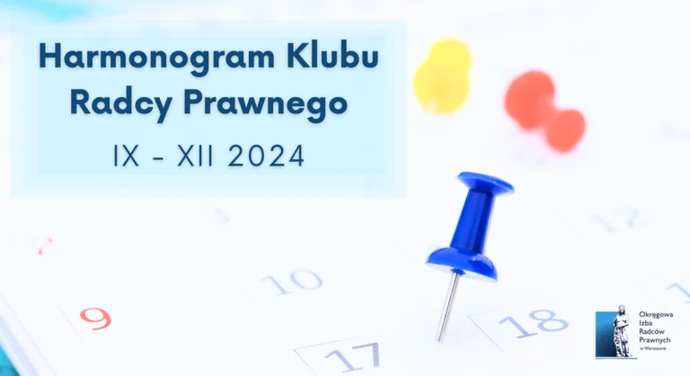 Przedstawiamy harmonogram aktywności Klubu Radcy Prawnego Okręgowej Izby Radców Prawnych w Warszawie w okresie od września do grudnia 2024 roku.