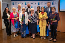 Następnie przyszedł czas na szczególny moment – podziękowanie p. Krystynie Janicz, Koordynatorce Klubu, za wieloletnią współpracę. W dowód uznania ogromnego zaangażowania na rzecz Klubu wręczono jej odznaczenie za zasługi dla Samorządu Radców Prawnych.