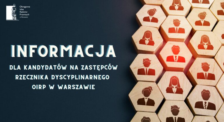 W wykonaniu uchwały Rady OIRP w Warszawie, Rzecznik Dyscyplinarny OIRP w Warszawie poszukuje kandydatów na funkcję zastępcy Rzecznika. Kandydować na tę funkcję mogą radcowie prawni, którzy łącznie spełniają następujące warunki:
