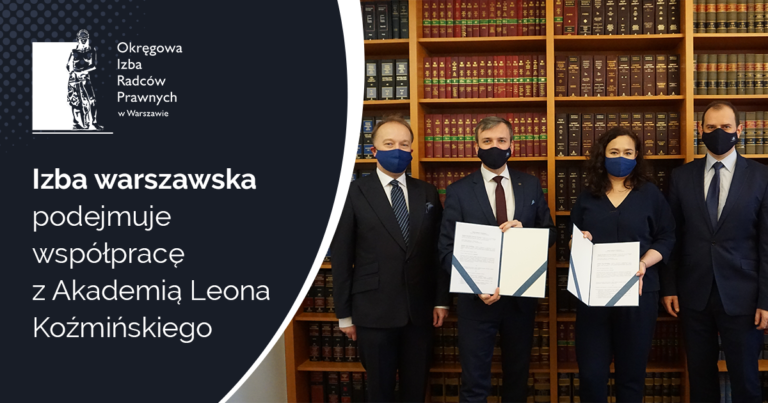 We wtorek, 19 stycznia, Okręgowa Izba Radców Prawnych w Warszawie zawarła porozumienie z Akademią Leona Koźmińskiego. Współpraca między tymi podmiotami będzie opierać się przede wszystkim na podejmowaniu wspólnych inicjatyw na rzecz wspierania działań edukacyjnych, w tym rozpoznawania aktualnych trendów w sferze kształcenia, identyfikacji potrzeb rynku pracy oraz wymianę doświadczeń i dobrych praktyk związanych z kształceniem prawników.