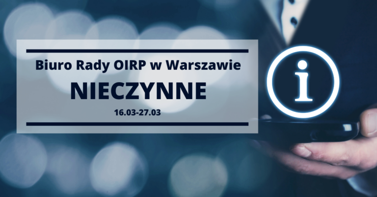W pozostałych przypadkach bezpośredni dostęp do Biura Rady będzie ograniczony do kontaktów zdalnych. Wykaz adresów mailowych oraz numerów telefonów znajdą Państwo na stronie: https://www.oirpwarszawa.pl/kontakt/