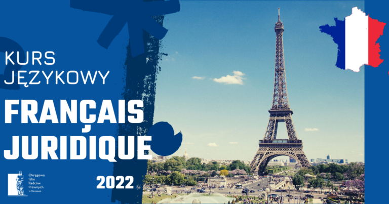Komisja Doskonalenia Zawodowego Okręgowej Izby Radców Prawnych w Warszawie zaprasza radców prawnych i aplikantów radcowskich do udziału w kursie z prawniczego języka francuskiego – Français juridique. Kurs będzie się składał z 3 trymestrów i odbywać się będzie w formie zajęć online. W każdym tygodniu zajęcia w danej grupie trwać będą 3 godz. szkoleniowe (2 godziny 15 minut). Dostęp do zajęć zapewnia OIRP w Warszawie przy wykorzystaniu platformy e-learningowej EAR. Zajęcia rozpoczną się w styczniu 2022 i będą trwały do grudnia 2022 (z wyłączeniem okresu wakacyjnego tj. lipiec-wrzesień).