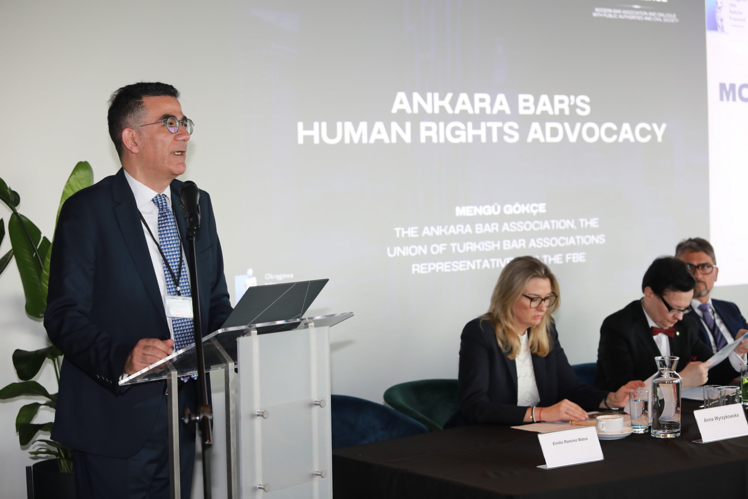 Sabine Fuhrmann, wiceprezes Niemieckiej Federalnej Izby Adwokackiej, omówiła rolę niemieckiej adwokatury federalnej w krajowych i międzynarodowych procesach legislacyjnych, podkreślając znaczenie budowania mostów w procesie legislacyjnym. Anca Baciu, członek rady Izby Adwokackiej w Cluj, zaprezentowała działania rumuńskich prawników w obronie sprawiedliwości przed wadami systemu. Kolejnym interesującym punktem programu było wystąpienie Mengü Gökçe, adwokata z Turcji, który przedstawił działania adwokatury w Ankarze na rzecz praw człowieka. Jego prezentacja ukazała trudną sytuację obywateli tureckich oraz unaoczniła skalę wyzwań przed jakimi stoją obecnie tureccy adwokaci. Opowiedział również o ciekawej inicjatywie ankarskich adwokatów – mobilnych centrach pomocy prawnej dostosowujących się do bieżących potrzeb społeczeństwa.