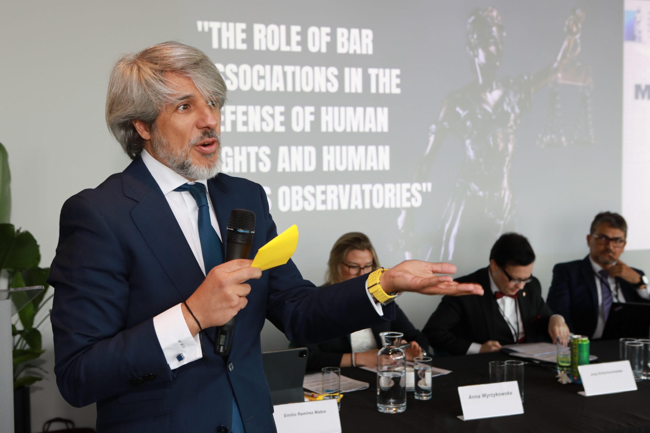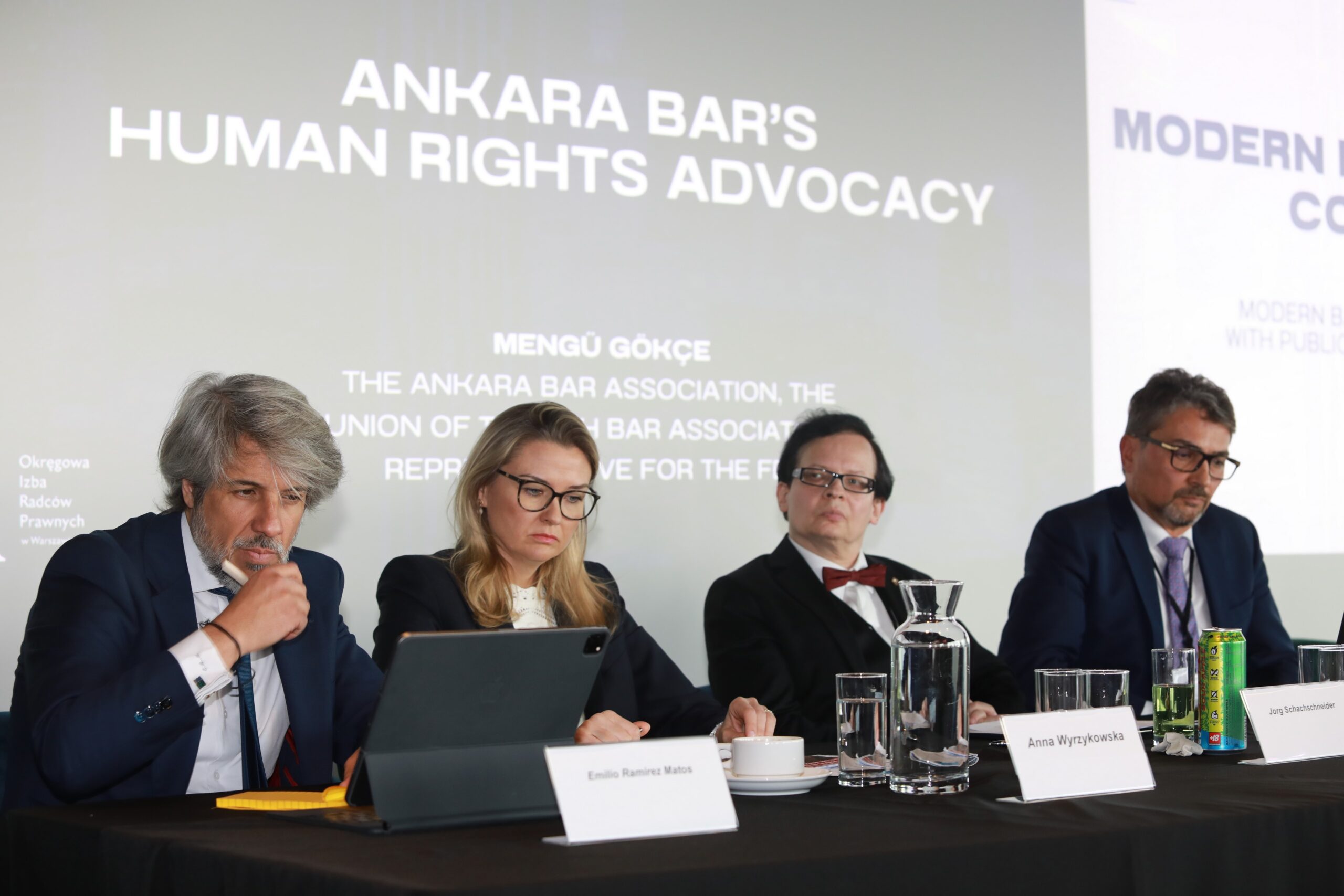 Emilio Ramirez Matos z Madryckiej Izby Adwokackiej omówił rolę izb adwokackich w obronie praw człowieka oraz funkcjonowanie obserwatoriów praw człowieka w ramach izb adwokackich. Z kolei Jorg Schachschneider, członek Rady Berlińskiej Izby Adwokackiej, przedstawił inicjatywy niemieckich prawników, którzy kładą duży nacisk na projekty edukacyjne w szkołach.
