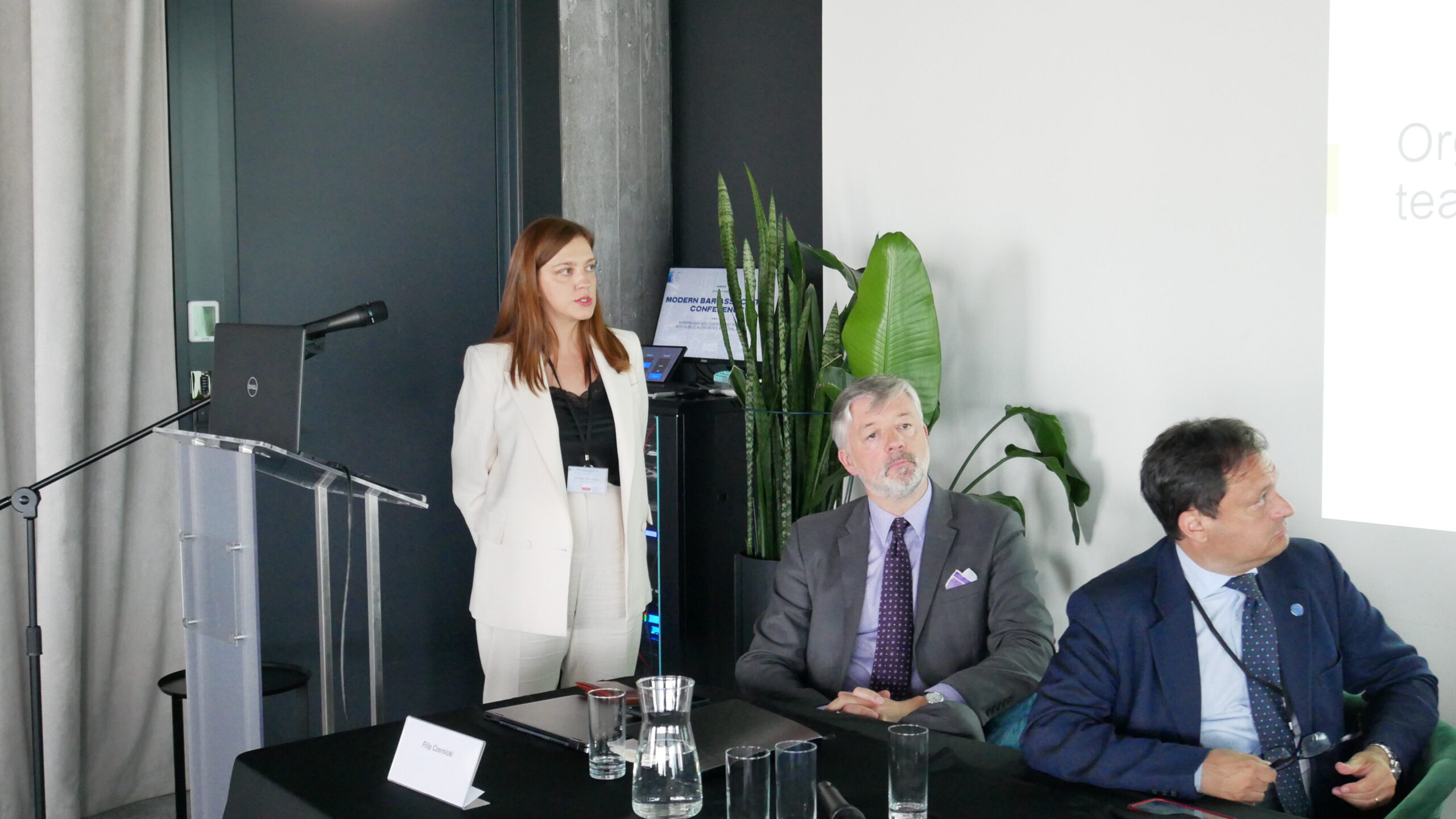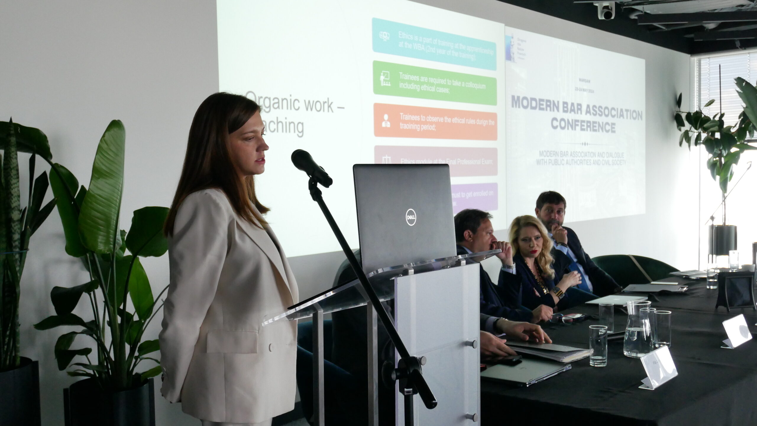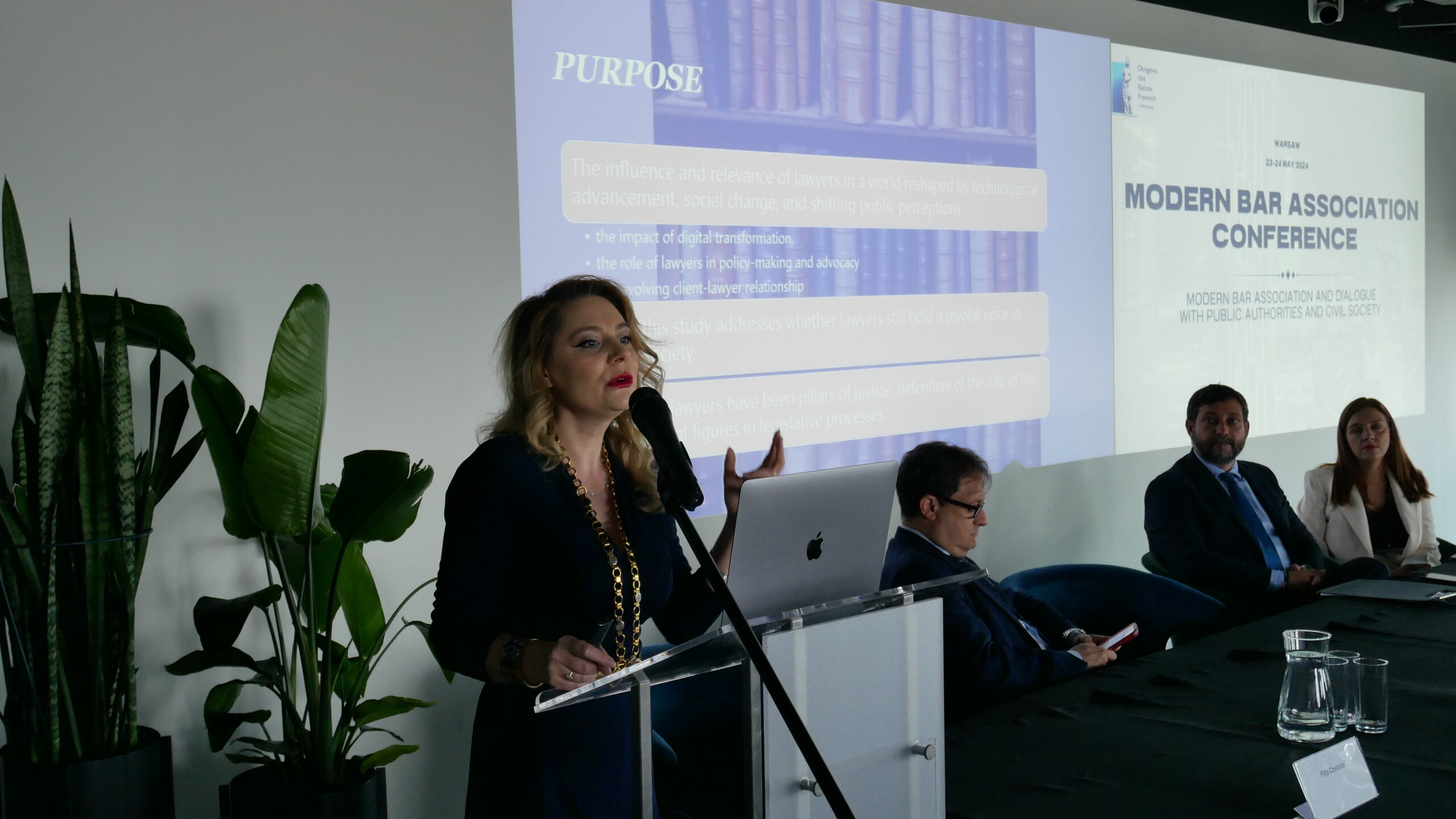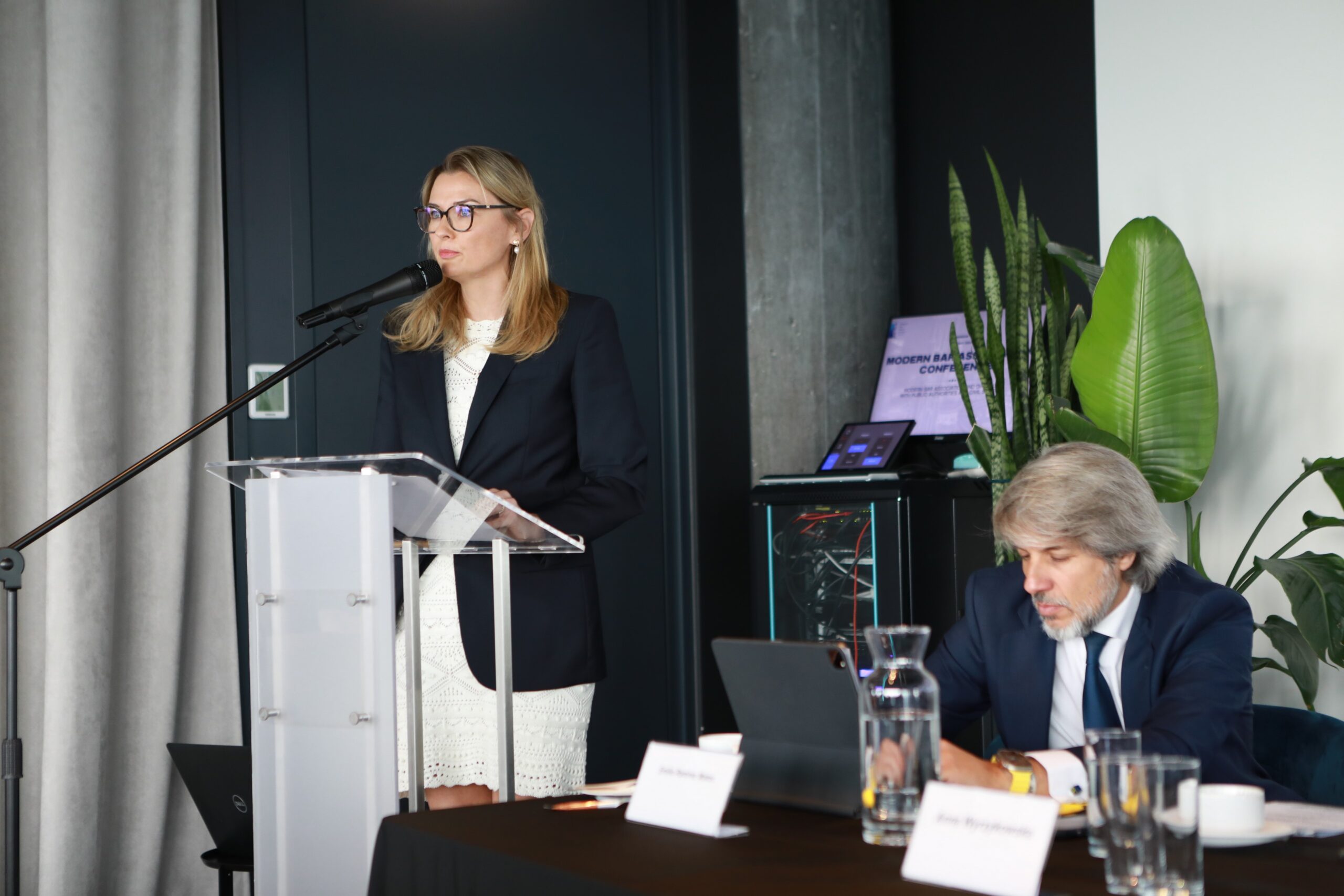 Konferencja rozpoczęła się tradycyjnie od wystąpienia pani Dziekan Rady OIRP w Warszawie, Moniki Całkiewicz, która powitała gości życząc im owocnych debat i ciekawych prelekcji. Gościem specjalnym konferencji, była pani Zuzanna Radzińska-Bluszcz, Podsekretarz Stanu w Ministerstwie sprawiedliwości, która wygłosiła mowę otwierającą tegoroczną Modern Bar Association Conference.