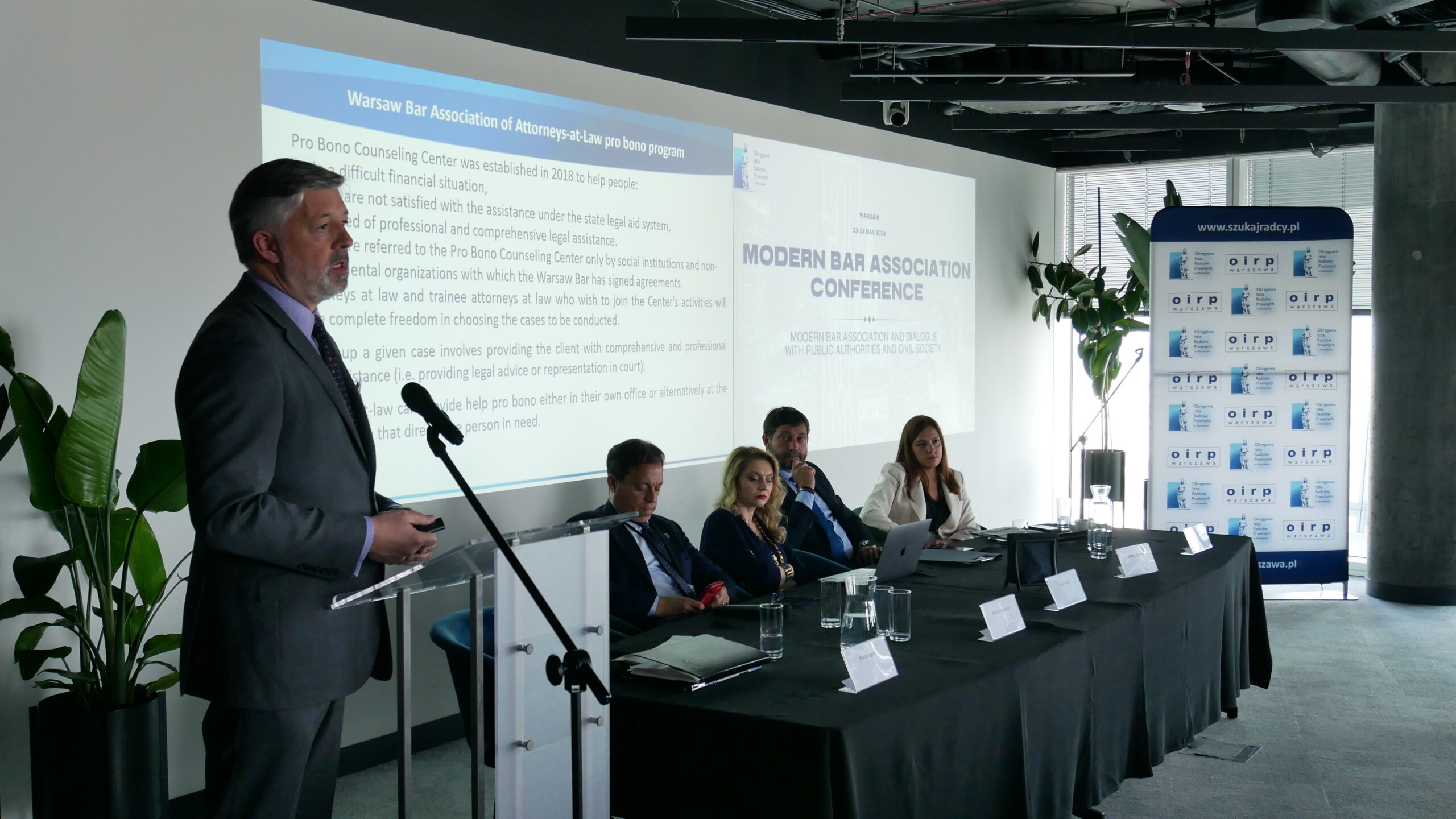 W dniach 23-24 maja 2024 roku, w wieżowcu Warsaw Spire przy placu Europejskim, odbyła się sztandarowa konferencja Komisji Zagranicznej i Praw Człowieka Okręgowej Izby Radców Prawnych w Warszawie – Modern Bar Association Conference. Tegoroczna edycja była poświęcona kluczowym zagadnieniom współpracy samorządów prawniczych z władzami publicznymi i przyciągnęła praktyków prawa z całego świata.