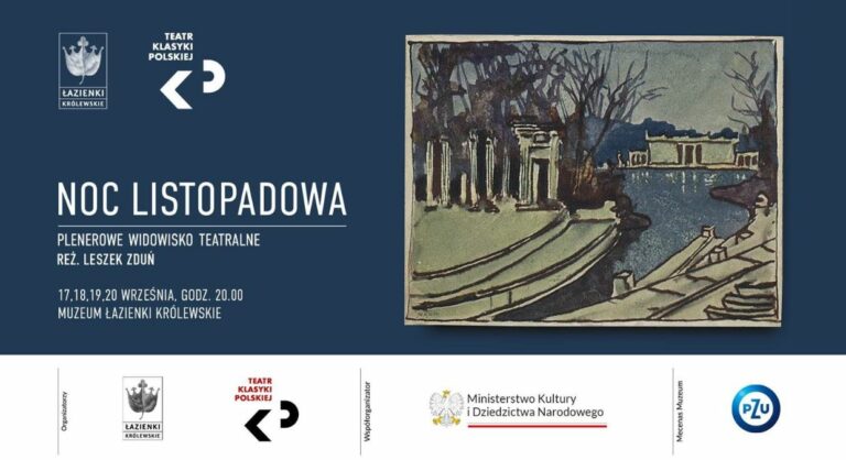 Zapraszamy na plenerowe widowisko teatralne „Noc listopadowa” Stanisława Wyspiańskiego. Sceny dramatu, którego scenerię stanowią Łazienki Królewskie, wyreżyserował Leszek Zduń, a wystąpią znakomici aktorzy scen polskich.