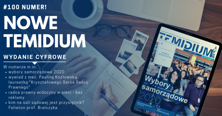 Jubileuszowe wydanie kwartalnika Izby warszawskiej „Temidium” jest już dostępne! Pierwszy w tym roku numer wyróżnia się nie tylko okrągłą liczbą (to już 100. numer!), ale przede wszystkim formą wydania – będzie ono dostępne jedynie w formie elektronicznej.