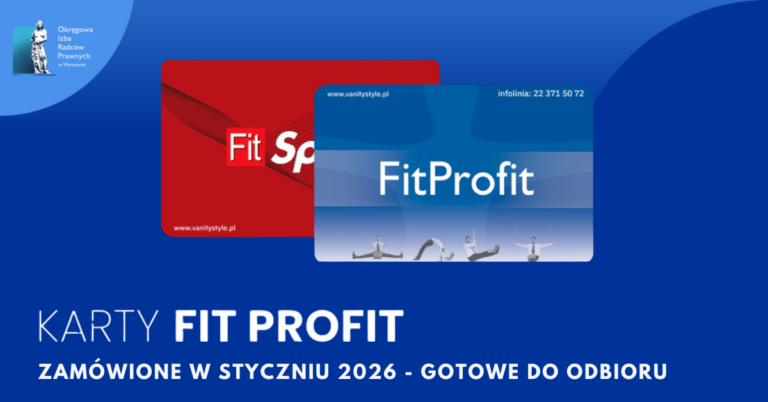 Radcy prawni i aplikanci radcowscy OIRP w Warszawie mogą już odbierać zamówione karty Fit Profit (dla siebie oraz osób towarzyszących) w Biurze Rady OIRP w Warszawie (Żytnia 15/16, hol nr 1, II piętro) w godzinach od 09:00 do 16:00.