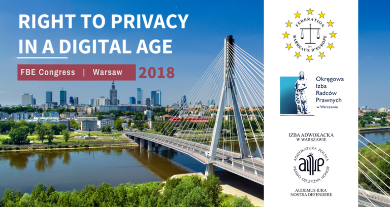 20-22 września 2018 r. w Warszawie odbędzie się 52 Kongres FBE (Fédération des Barreaux d’Europe, Federacji Adwokatur Europejskich), który organizuje Okręgowa Izba Radców Prawnych w Warszawie wraz z Okręgową Radą Adwokacką w Warszawie. Tematem przewodnim Kongresu będzie „Prawo do prywatności w erze cyfrowej”, które obecnie jest jednym z najszerzej dyskutowanych problemów w Europie.