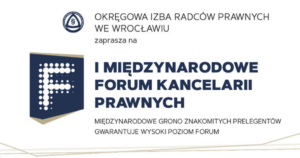 Okręgowa Izba Radców Prawnych we Wrocławiu zaprasza do udziału w I Międzynarodowym Forum Kancelarii Prawnych, które odbędzie się w dniu 20 września 2019 roku, w hotelu Mercure Wrocław Centrum.