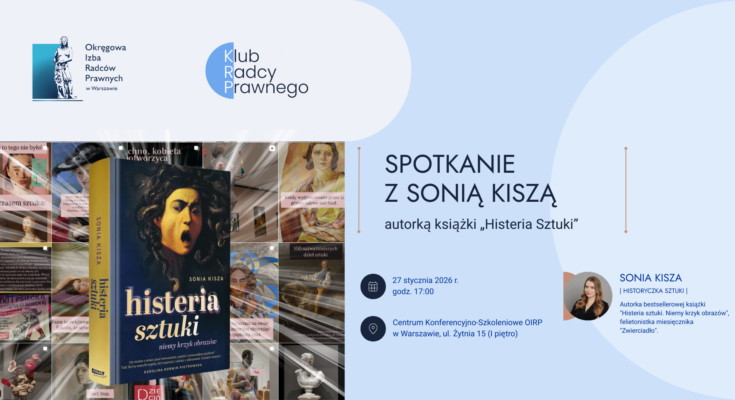 OIRP w Warszawie zaprasza radców prawnych oraz aplikantów radcowskich na wyjątkowe spotkanie z Sonią Kiszą – historyczką sztuki, felietonistką „Zwierciadła” oraz autorką bestsellerowej książki „Histeria sztuki. Niemy krzyk obrazów”.