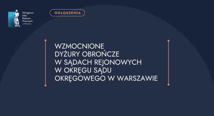 W związku z tegorocznymi obchodami Święta Niepodległości, Rada OIRP w Warszawie poszukuje radców prawnych, uprawnionych do pełnienia funkcji obrońcy w sprawach karnych, którzy w okresie 11-14 listopada 2025 r.