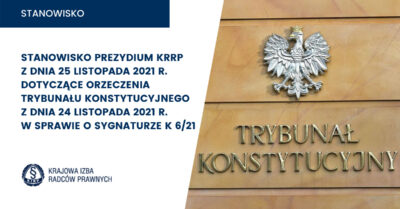 Prezydium Krajowej Rady Radców Prawnych wyraża przekonanie, że orzeczenie Trybunału Konstytucyjnego („TK”) z dnia 24 listopada 2021 r.