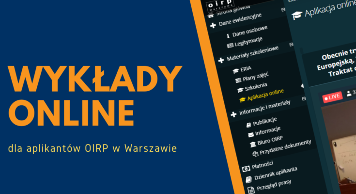W związku ze stanem zagrożenia epidemicznego chorobą zakaźną wywołaną koronawirusem („COVID-19”) od środy, 18 marca, aplikanci OIRP w Warszawie mogą uczestniczyć w obowiązkowych zajęciach realizowanych w ramach programu aplikacji bez wychodzen...