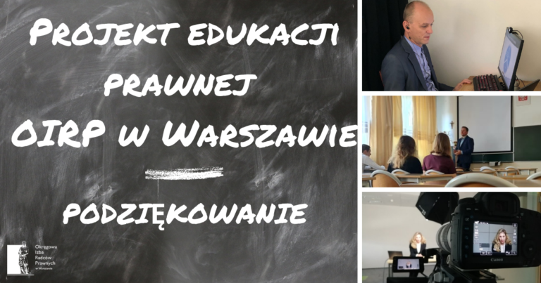 W imieniu Stołecznej Izby chciałbym szczególne podziękować osobom zaangażowanym w projekt, które z pełnym profesjonalizmem i podejściem do młodzieży przekazywały wiedzę prawniczą – mówi r. pr. Przemysław Ligęzowski, Koordynator ds. edukacji prawnej w OIRP w Warszawie – Dzięki nim działalność edukacyjna radców prawnych oceniana jest bardzo pozytywnie zarówno przez kadrę nauczycielską jak i młodzież szkolną. Liczymy na Was w przyszłości tj.: