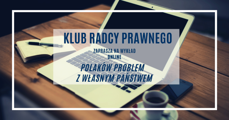 We wtorek 19 maja 2020 r. o godz. 15.30 odbędzie się pierwsza transmisja online spotkania w ramach Klubu Radcy Prawnego. Wykład, który poprowadzi prof. Wawrzyniec Konarski – „Polaków problem z własnym państwem” dotyczył będzie tradycji sceptycznego czy wręcz niechętnego nastawienia Polaków do instytucji własnego państwa. Kanwą będą rozważania tegoż z perspektywy I i II Rzeczypospolitej, PRL oraz III RP.