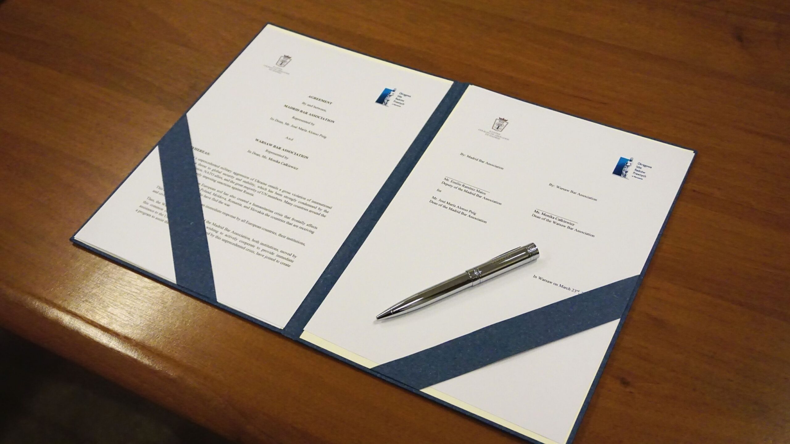 W środę, 23 marca, w warszawskim hotelu Mercure odbyło się oficjalne spotkanie przedstawicieli madryckiej Izby adwokackiej z członkami Okręgowej Izby Radców Prawnych w Warszawie, w czasie którego podpisano porozumienie o współpracy obu podmiotów m.in. nad stworzeniem programu pomocy narodowi ukraińskiemu w obliczu rosyjskiej agresji.