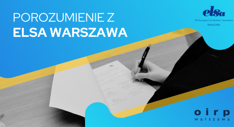 W piątek, 23 lutego 2024 roku, Okręgowa Izba Radców Prawnych w Warszawie zawarła porozumienie o współpracy z Europejskim Stowarzyszeniem Studentów Prawa ELSA Warszawa. Dokument jest formalnym potwierdzeniem zaangażowania warszawskich radców prawnych w działalność Elsa Warszawa i gwarancją rozwoju tej współpracy.