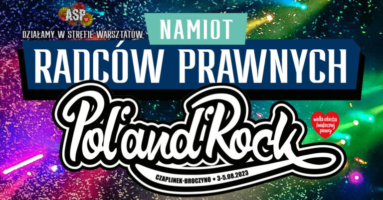 Poradnia prawna, warsztaty tematyczne, konkursy wiedzy o prawie i specjalni goście. Radcowie prawni ruszają na 29. Pol’and’Rock Festival, po to, aby pomagać, doradzać i edukować.