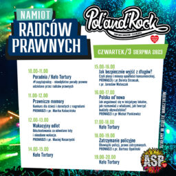Już od środy 2 sierpnia, a więc dzień przed oficjalnym rozpoczęciem festiwalu, radcowie prawni z OIRP w Poznaniu razem z przedstawicielami KIRP oraz przy gościnnym udziale radców z OIRP Koszalin będą czekać na wszystkich chętnych w Namiocie Radców Prawnych na terenie lądowiska Czaplinek-Broczyno.