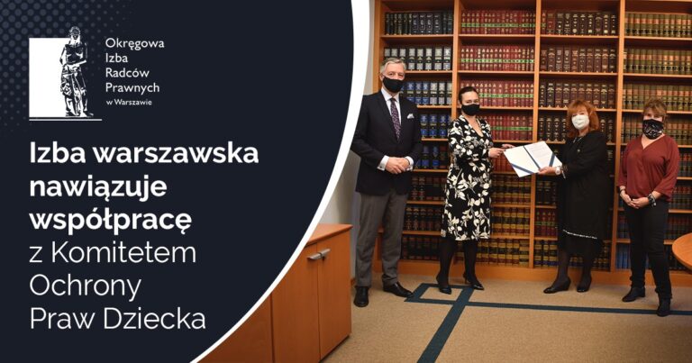 We wtorek, 27 października, Radcowski Ośrodek Pomocy Pro Bono oficjalnie nawiązał współpracę z Komitetem Ochrony Praw Dziecka. Podczas spotkania z przedstawicielami stowarzyszenia, stołecznych radców prawnych reprezentowali Dziekan Rady OIRP w Warszawie, prof. Monika Całkiewicz oraz koordynator działań Pro Bono w Izbie warszawskiej, dr Filip Czernicki.