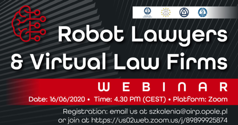 Webinar organizują komisje ds. zagranicznych przy OIRP we Wrocławiu i Opolu oraz Komisja Zagraniczna Krajowej Rady Radców Prawnych. Prelegenci odpowiedzą nie tylko na tytułowe pytanie, ale także na inne pytania dotyczące technologii prawniczej i sztucznej inteligencji w pracy prawnika.