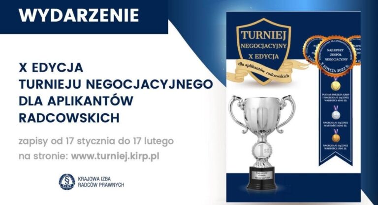 17 stycznia wystartowała X edycja Turnieju Negocjacyjnego dla Aplikantów Radcowskich. W dotychczasowych edycjach projektu realizowanego przez Krajową Izbę Radców Prawnych wzięło udział już ponad tysiąc aplikantów radcowskich. Celem turnieju jest doskonalenie wśród uczestników cennych, zwiększających konkurencyjność na rynku prawniczym, umiejętności negocjacyjnych, a także propagowanie negocjacji jako alternatywnej metody rozwiązywania konfliktów, pozwalającej na wykorzystanie rozwiązań uwzględniających faktyczny interes klienta.