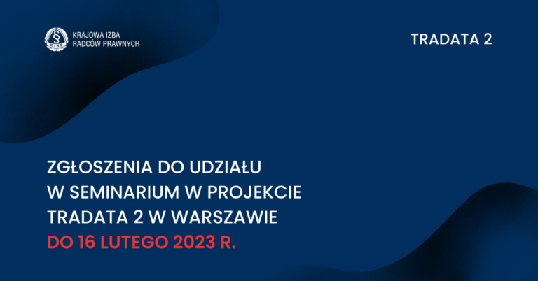 Seminarium w projekcie TRADATA 2 odbędzie się 17 lutego w Warszawie. Harmonogram zostanie opublikowany wkrótce na stronie KIRP.