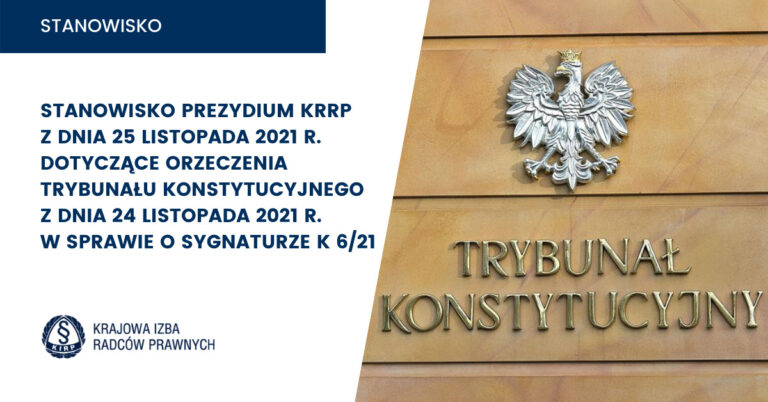 Prezydium Krajowej Rady Radców Prawnych wyraża przekonanie, że orzeczenie Trybunału Konstytucyjnego („TK”) z dnia 24 listopada 2021 r. w sprawie o sygnaturze K 6/21 zmierza do zniesienia gwarantowanej Europejską Konwencją Praw Człowieka i Podstawowych Wolności z 1950 r. („EKPC”) ochrony praw indywidualnych i odebrania obywatelom możliwości ubiegania się o skuteczną ochronę ich praw przez Europejski Trybunał Praw Człowieka w Strasburgu („ETPCz”).