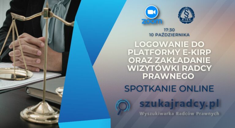 W poniedziałek 10 października o godz. 17:30 odbędzie się kolejne spotkanie online dotyczące logowania się do strony e-kirp.pl, zakładania wizytówki radcy prawnego oraz korzyści z posiadania konta na powyższej platformie i zarejestrowania się w ogólnopolskiej wyszukiwarce szukajradcy.pl. Spotkanie w formie zdalnej zostanie przeprowadzone na platformie Zoom. Na wydarzenie, wszystkich członków samorządu radców prawnych, zaprasza Prezes Krajowej Rady Radców Prawnych, Włodzimierz Chróścik.