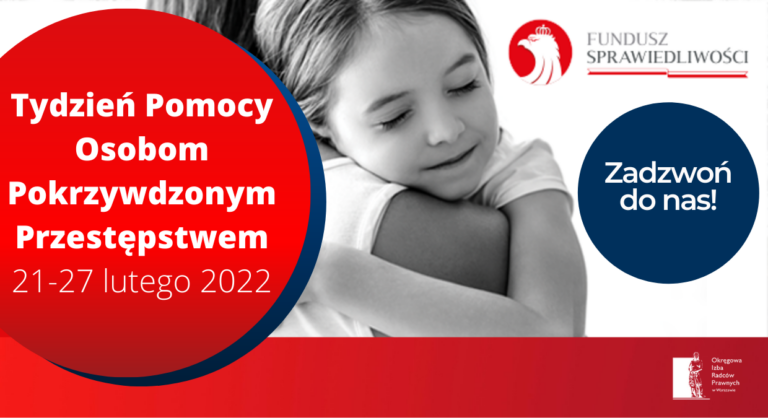 W dniach 21 – 25 lutego, w Izbie warszawskiej będzie można zasięgnąć bezpłatnej porady prawnej. Stołeczny samorząd radców prawnych włącza się bowiem w „Tydzień Pomocy Osobom Pokrzywdzonym Przestępstwem” – akcję Ministerstwa Sprawiedliwości, której celem jest zwrócenie szczególnej uwagi na potrzeby i prawa osób pokrzywdzonych przestępstwem.