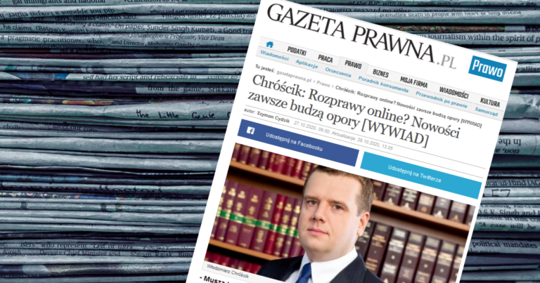 Zachęcamy do lektury wywiadu z Wicedziekanem Rady OIRP w Warszawie który ukazał się 27 października na łamach Gazety Prawnej. Rozmowa dotyczy transmisji rozpraw w internecie, ich walorów edukacyjnych i marketingowych, a przede wszystkim o korzyści jakie niesie przeniesienie działalności prawników do sieci.