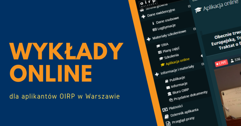 W związku ze stanem zagrożenia epidemicznego chorobą zakaźną wywołaną koronawirusem („COVID-19”) od środy, 18 marca, aplikanci OIRP w Warszawie mogą uczestniczyć w obowiązkowych zajęciach realizowanych w ramach programu aplikacji bez wychodzenia z domu. Izba warszawska uruchomiła bowiem wykłady online, które są dostępne po zalogowaniu się do Extranetu.