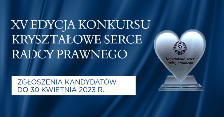 Krajowa Rada Radców Prawnych ogłasza XV edycję konkursu „Kryształowe Serce Radcy Prawnego”. Do udziału w konkursie mogą zostać zgłoszeni radcowie prawni i aplikanci radcowscy, którzy wyróżnili się bezinteresowną działalnością na rzecz osób fizycznych, organizacji społecznych, instytucji realizujących cele publiczne, kościołów, związków wyznaniowych lub grup osób dotkniętych klęskami. Zgłoszenia można nadsyłać do 30 kwietnia na adres kirp@kirp.pl.