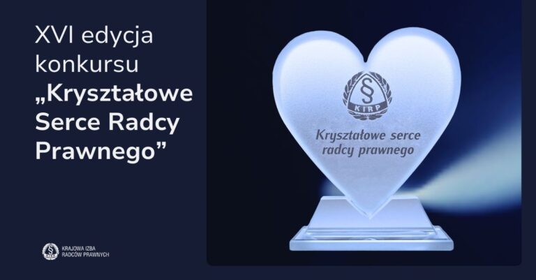 Krajowa Rada Radców Prawnych ogłasza XVI edycję konkursu „Kryształowe Serce Radcy Prawnego”. Konkurs przeznaczony jest dla radców prawnych i aplikantów radcowskich, którzy swoją bezinteresowną działalnością wnieśli istotny wkład na rzecz społeczności, pomagając osobom fizycznym, organizacjom społecznym, instytucjom publicznym, a także kościołom i związkom wyznaniowym czy grupom dotkniętym różnego rodzaju klęskami.