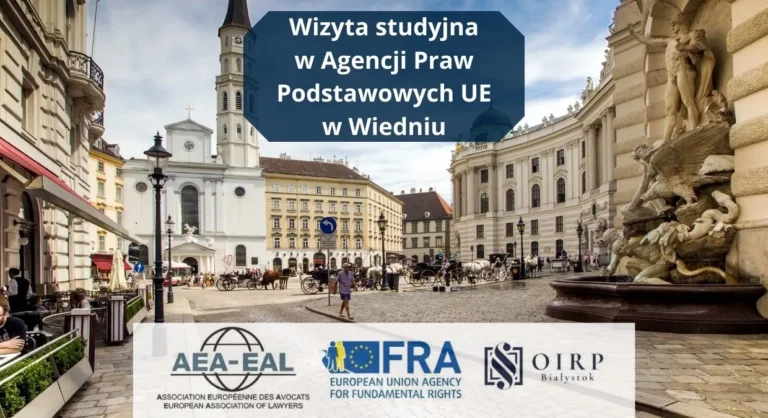 W imieniu Krajowej Izby Radców Prawnych przekazujemy informację o możliwości wzięcia udziału w wizycie studyjnej w Agencji Praw Podstawowych Unii Europejskiej w Wiedniu. Wydarzenie jest współorganizowane przez OIRP w Białymstoku, FRA oraz AEA-EAL i odbędzie się 18 stycznia 2024 roku.