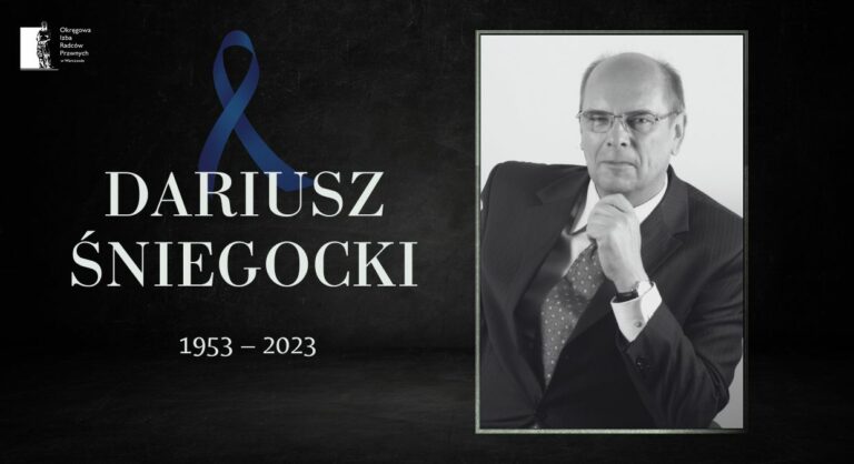 Z przykrością informujemy, że zmarł Dariusz Śniegocki – Dziekan Rady Okręgowej Izby Radców Prawnych w Warszawie w latach 1996–2010 (V, VI i VII kadencji).