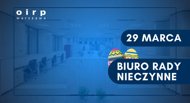 Uprzejmie informujemy, że w piątek, 29 marca 2024 roku, Biuro Rady Okręgowej Izby Radców Prawnych w Warszawie będzie nieczynne.