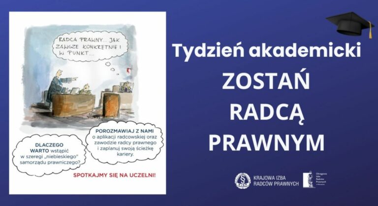 Okręgowa Izba Radców Prawnych w Warszawie aktywnie włączyła się w zainicjowaną przez Krajową Radę Radców Prawnych akcję „Tydzień Akademicki – zostań radcą prawnym”. W jej ramach na sześciu warszawskich uczelniach odbędą się spotkania mające na celu promowanie zawodu radcy prawnego wśród studentów oraz zachęcenie ich do wyboru aplikacji radcowskiej.