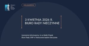 Informujemy, że w piątek, 3 kwietnia (Wielki Piątek), Biuro OIRP w Warszawie będzie nieczynne. Zapraszamy do kontaktu od 7 kwietnia (wtorek) oraz w pozostałe dni robocze w standardowych godzinach pracy Biura.