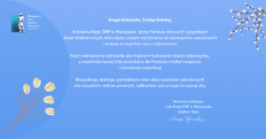 Z okazji Świąt Wielkanocnych przekazujemy Państwu najserdeczniejsze życzenia od r. pr. Anny Sękowskiej, Dziekan Rady OIRP w Warszawie.