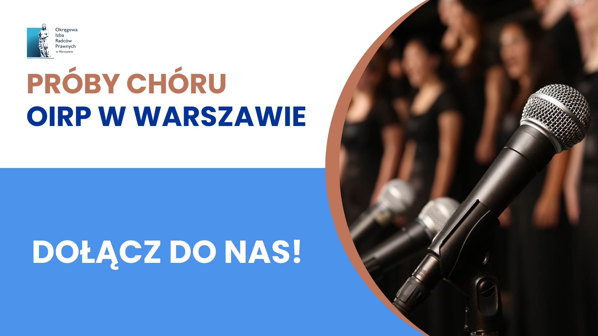 Chór Okręgowej Izby Radców Prawnych w Warszawie wznawia swoją działalność po wakacyjnej przerwie! Już od września członkowie chóru ponownie będą spotykać się na cotygodniowych próbach, które odbywać się będą w każdą środę w godzinach 17:45–20:15 w Akademii Pedagogiki Specjalnej im. Marii Grzegorzewskiej w Warszawie (ul. Szczęśliwicka 40).